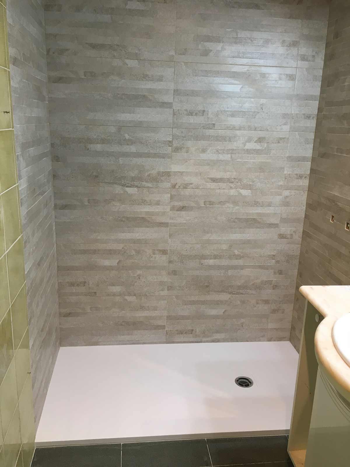 Seguidamente se realiza la colocación del plato y posteriormente alicatamos la zona de ducha. Una vez alicatada dicha zona rejuntamos todas las juntas.